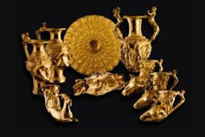 Ето 7 по-малко известни и любопитни факта за най-бляскавия тракийски шедьовър — Панагюрското златно съкровище:- Първоначалното „претегляне“: Когато братята Дейкови го откриват през 1949 г., те първо го занасят в общината, където го измиват с дезинфектант, а след това го излагат на витрината на местните хали, за да го види народът, преди да пристигнат археолозите.