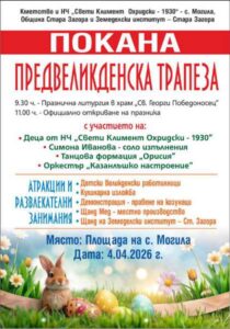 В старозагорското село Могила подготвят пъстро тържество по повод обичания български празник Лазаровден с „Предвеликденска трапеза“ на 4 април 2026 г.