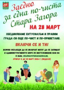 Община Стара Загора напомня на всички желаещи да се включат в кампанията „Заедно за една по-чиста Стара Загора“, че крайният срок за записване е до 22 март 2026 г. (включително).