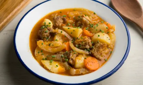 Когато картофите са почти готови, се добавят доматите. Ако са пресни, ястието се вари още около 15 минути, а ако са от консерва – около 5 минути.