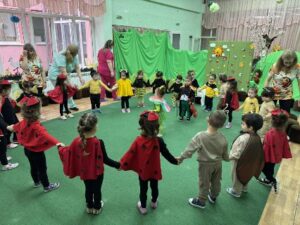 Под ръководството на педагога г-жа Кръстева децата представиха музикалната оперета „Пеперудена магия“. С много старание и въображение талантливите малчугани се преобразиха в различни приказни образи – гъсеница, бръмбари, пчелички и светулки, като създадоха истинска цветна феерия на сцената.