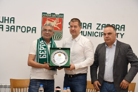 В знак на признателност за последователната подкрепа към футбола в Стара Загора и грижата за развитието на спортната инфраструктура, от името на Българския футболен съюз Стелиян Попчев поднесе на кмета Живко Тодоров специален символичен подарък – „златна топка“.
