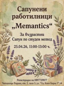 Сапунена работилница „Мемантикс“ за възрастни ще се състои от 11.00ч.