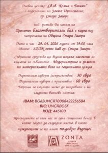 Благотворителният бал ще се проведе на 29 април 2026 г. от 19.00 ч. в LEON Event Hall в Стара Загора и ще събере представители на институции, бизнеса и граждани, обединени около подкрепата за социалната услуга.