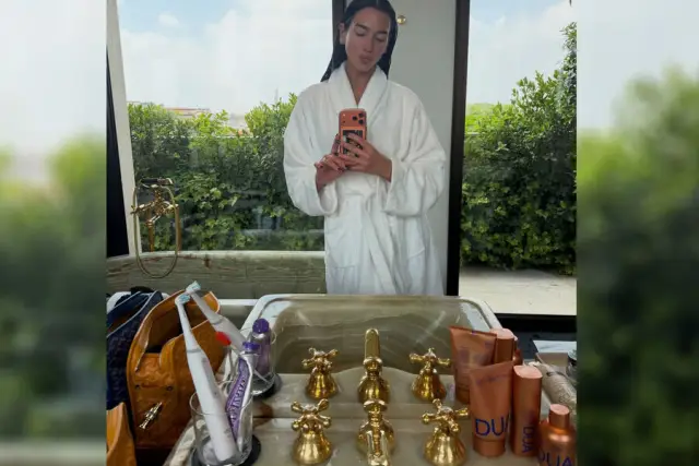 Певицата Дуа Липа зарадва феновете си, пускайки в бял халат от банята. Тя сподели снимките в Instagram, направени по време на пътуване до Париж.