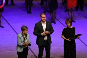 След това кметът покани на сцената Иванка Сотирова, дългогодишен директор на гимназията, и изрази благодарност за всеотдайността ѝ. В своето слово тя отбеляза: „Всичко това, което училището дава, ние го виждаме. Поклон към всички учители, които успяват да възпитават и да създават хора“ – като пример посочи самия кмет.