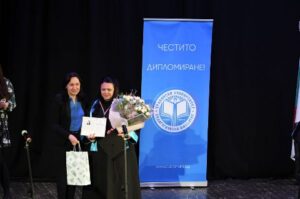 Заместник-кметът Надежда Чакърова връчи диплом ,цветя и подаръци от Община Стара Загора на отличничката Гергана Петрова от специалност „Предучилищна и начална училищна педагогика“.