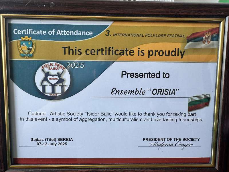 Фолклорна танцова школа „Орисия“ получи сертификат за отлично представяне, а организаторите изразиха възхищението си от професионализма и артистизма на българските участници.