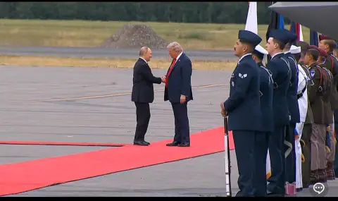 Президентите на Русия – Владимир Путин, и на САЩ – Доналд Тръмп, се ръкуваха пред медиите и минаха заедно по червения килим, разстлан за тях на пистата на военната база "Елмендорф-Ричардън", бе излъчено на живо от пресслужбата на Белия дом и телевизия "Фокс 9".