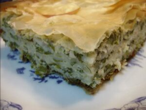 Продукти: 1 кг спанак, около 1 чаена чаша настъргано сирене, 1 чаена чаша мазнина, 4 яйца, 1 глава лук (настърган или нарязан на ситно), 1 чаена чаша прясно мляко, 1 връзка магданоз (едро нарязан), 1 връзка копър, 1/2лъжичка сода, 1/2 лъжичка сол, брашно