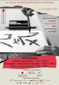 В залите на Художествена галерия Стара Загора на 2 септември 2025 г. (вторник), от 11.00 ч. до 13.00 ч., ще се проведе Арт работилница Шодо и Суми-е: японска калиграфия и живопис.