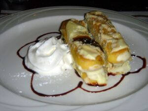 Стъпка 4: Всяка бишкота се разрязва на 4 парчета, които се слепват две по две с приготвения крем.