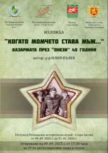 На 9 септември 2025 г. от 17.30 ч. на 4-то експозиционно ниво в Регионален исторически музей – Стара Загора ще се открие изложбата „КОГАТО МОМЧЕТО СТАВА МЪЖ… КАЗАРМАТА ПРЕЗ „ОНЕЗИ” 45 ГОДИНИ “, съобщиха за ЗАРАТА