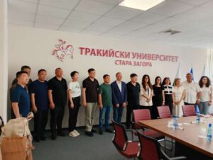 След срещата в Община Стара Загора гостите от Китай бяха топло посрещнати и в Тракийския университет от проф. Дарина Заимова, зам.-ректор по научноизследователска и международна дейност и доц. Емил Славов, зам.-ректор по проектна дейност, доц. Станислава Пеева, зам. декан учебна дейност към Аграрен факултет и доц. д-р Мима Тодорова, зам.-декан по научноизследователска дейност и международно сътрудничество към Аграрен факултет. Там гостите бяха запознати с научните дейности, като основният фокус бе върху селското стопанство.