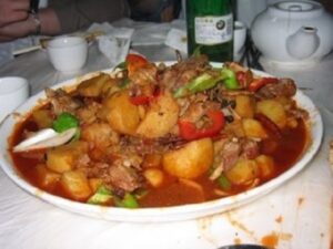 Необходими продукти за 5 порции: 500 гр телешко месо, 4 големи картофа, 2 глави кромид лук, 2 супени лъжици доматено пюре, 2 големи моркова, 3 червени пиперки, ½ връзка магданоз, 300 мл топла вода, 5 скилидки чесън, сол