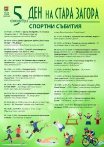 Разнообразна спортна програма очаква всички жители и гости на Стара Загора по повод предстоящия празник на града – 5 октомври. Над 20 спортни събития са включени в празничния календар и ще се проведат с подкрепата на Община Стара Загора.