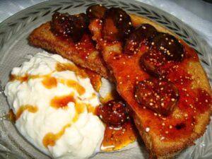 Продукти: 250 гр. сух бял хляб, 3-4 яйца, 2 чаени чаши прясно мляко, захар, 5-6 супени лъжици масло, сладко от плодове по избор, 2 праха ванилия