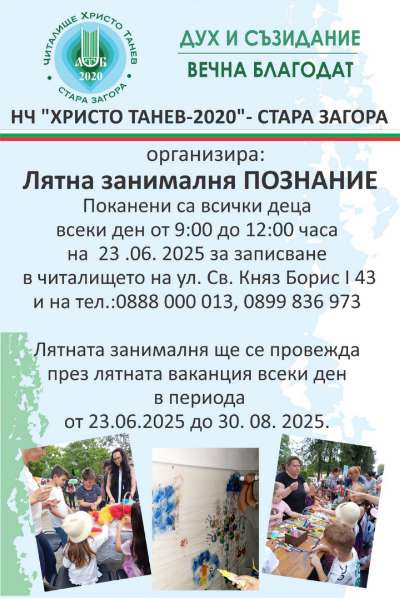 Лятна занималня с обучения по рисуване организира старозагорското НЧ „Христо Танев – 2020“ до 30 август 2025 г.