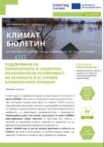 Настоящият бюлетин представя обобщение на дейностите и постигнатите резултати през третия семестър от изпълнението на проекта. В този период партньорите идентифицираха регулаторни пропуски в областта на климатичните политики, както и добри практики и стратегии за адаптация към климатичните промени и управление на риска.