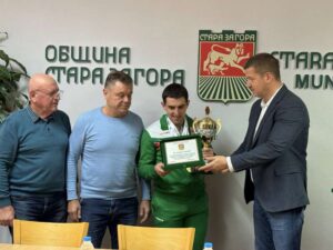 Кметът Живко Тодоров отличи с плакети триатлонеца Стоян Георгиев и неговия треньор, съобщиха за ЗАРАТА