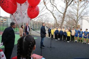 „За мен е огромна чест да присъствам на откриването на обновените площадки – за футбол, бадминтон и тенис на маса. С тях атмосферата в училищния двор ще бъде различна – ще има деца, които играят, които спортуват. Програмата за обновяване на всички дворове работи и ще продължим да обновяваме, защото децата го заслужават.“