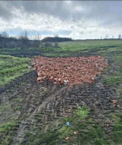 Отново мъж е престъпил чл. 133 от Закона за управление на отпадъците. Санкцията според текста му е глоба между 300 и 1000 лева за физическо лице, което изхвърля смет на непозволени места. Мъжът е разтоварил около 2 кубика строителни отпадъци – керемиди и хоросан, в югозападния край на с. Стрелец, в близост до бившия стадион (на снимката).
