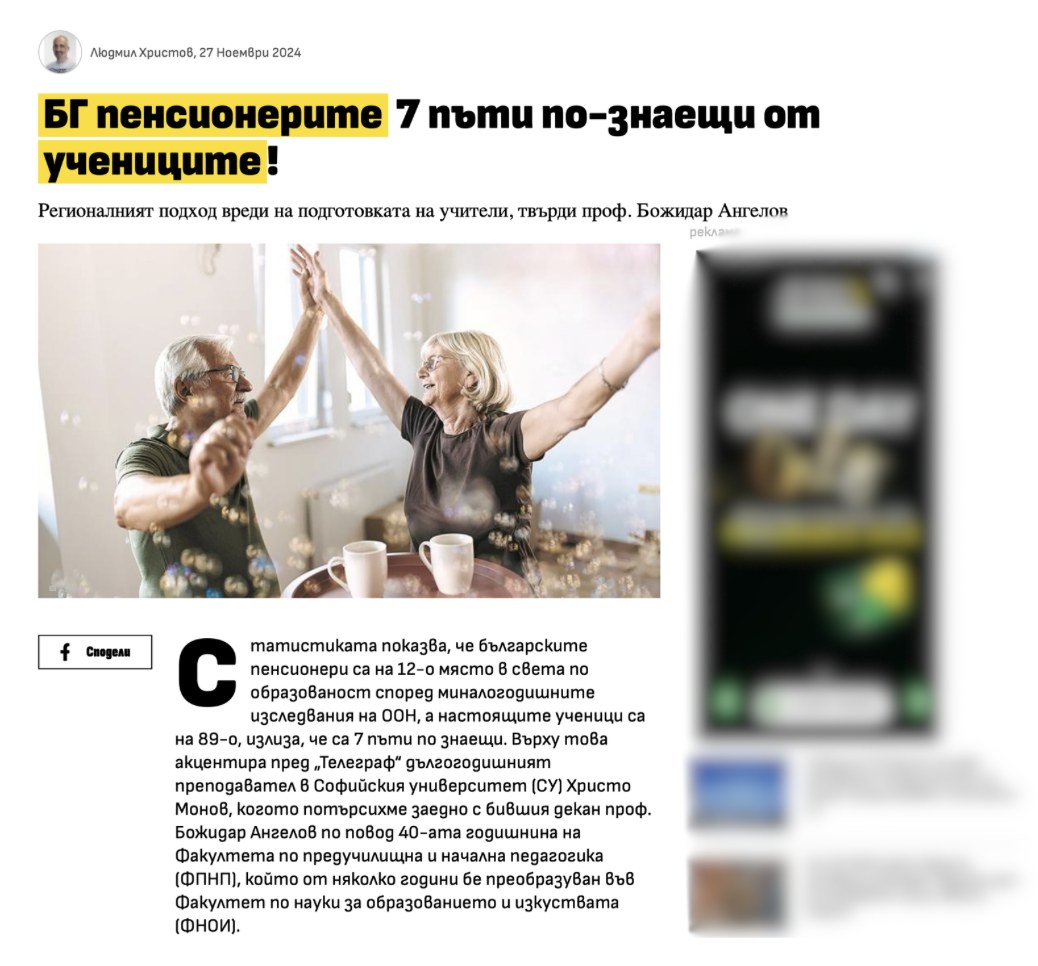 Материалът Няма доказателства България да е на челно място по образованост на пенсионерите е публикуван за пръв път на Factcheck.bg.