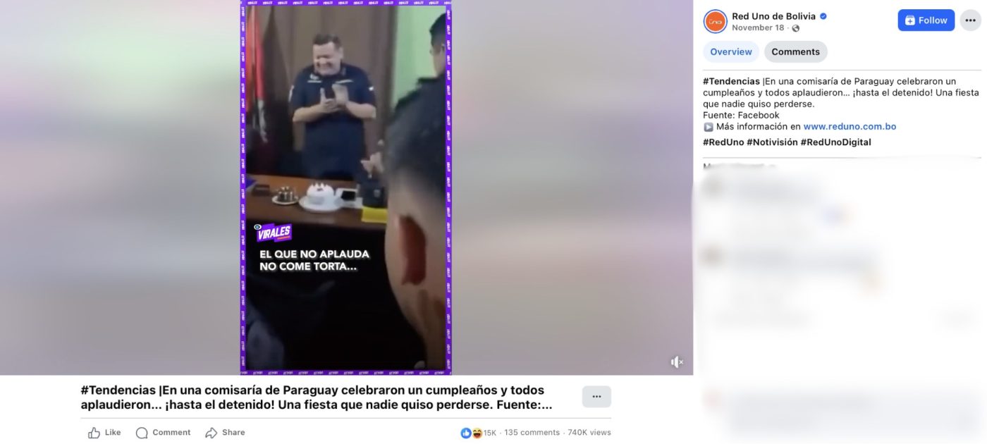 Видеото, за което се твърди, че показва полицаи, празнуващи рожден ден във второ РПУ в София, не е от България. Кадрите са заснети в Парагвай и започват да набират популярност през ноември.