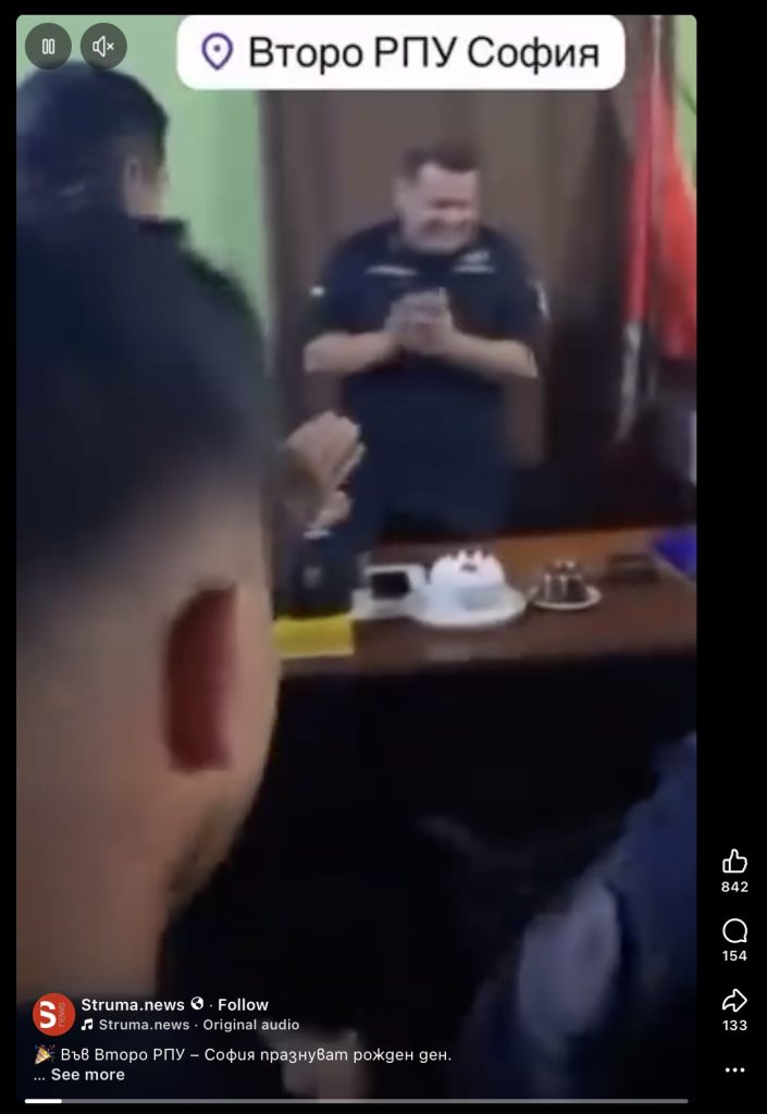 Видео с полицейски служители, празнуващи рожден ден на работното си място, докато арестант им ръкопляска от килията, се разпространява в социалните мрежи с твърдение, че е заснето във второ РПУ в София.