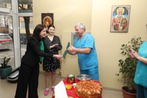 По време на тържеството бе връчен поздравителен адрес от кмета Живко Тодоров към екипа на МБАЛ „НиаМед“ – като знак на уважение и признателност за високия професионализъм и отдаденост. Зам.-кметът Чакърова поздрави и родилката София Людова, включила се в празничния ритуал, като ѝ поднесе цветя и поздравителен адрес за нейното новородено бебе – Габриела Людова, родена ден по-рано в лечебното заведение.