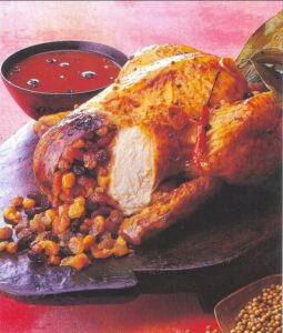 Необходими продукти за 6 порции: 1 пиле, 3 супени лъжици стафиди, 1 филия бял хляб, 1 голяма глава кромид лук, 1 пакетче краве масло, магданоз, копър, сол