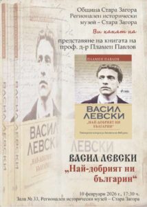 На 10 февруари 2026 г. от 17:30 ч. в зала №33 на Регионален исторически музей – Стара Загора проф. д-р Пламен Павлов ще представи книгата си „Васил Левски: най-добрият ни българин“, съобщиха за ЗАРАТА