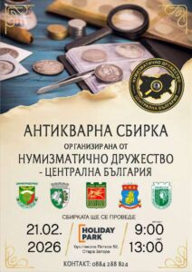 Нумизматично дружество Централна България организира Антикварна сбирка в Стара Загора на 21 февруари 2026 г. от 09.00 ч.